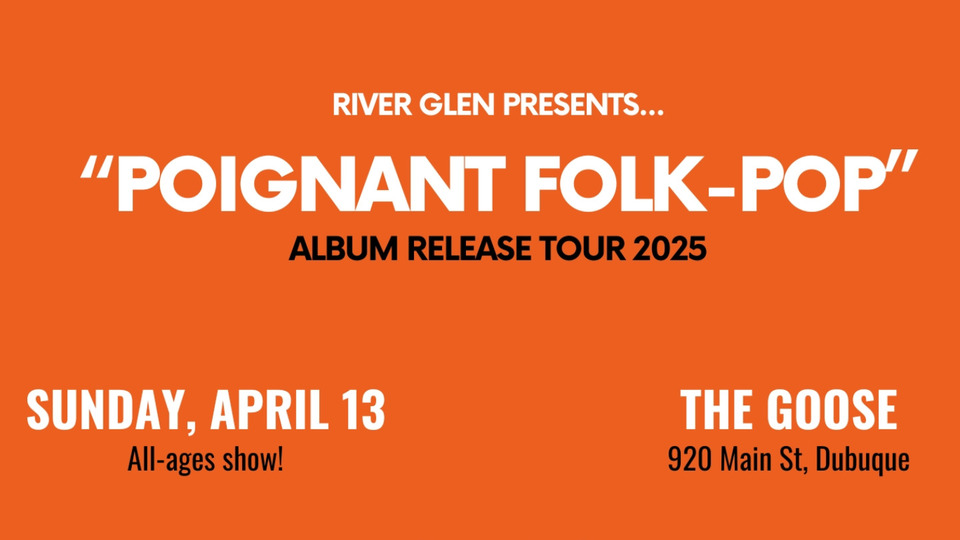 Get ready for an unforgettable afternoon of heartfelt melodies and folk-pop vibes as River Glen brings their highly anticipated "Poignant Folk-Pop" Album Release Tour to Dubuque! This all-ages event will feature an incredible lineup of special guests, including Old Oaks, Alex Flesher, Sam Stover, and Élan Seven Thunders.